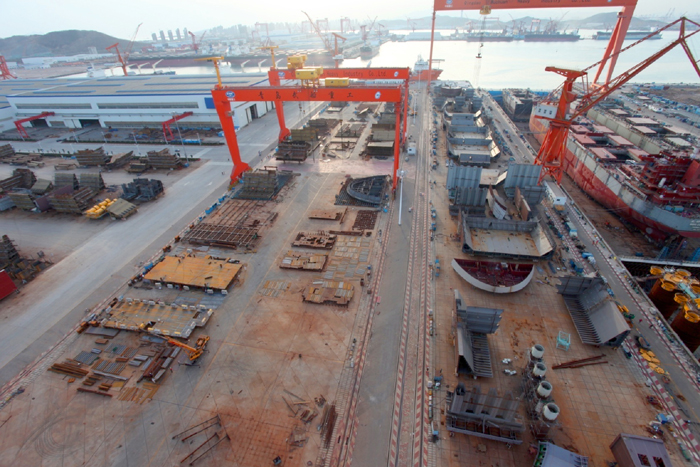 承擔(dān)平面分段片體翻身、合攏和裝配工作;雙層底立體分段的焊接工作;頂邊艙立體分段的焊接工作;曲面分段翻身焊接工作總段制造工作;總段預(yù)舾裝工作。主尺度:該場(chǎng)地長(zhǎng)475m,寬90m,面積42750 。