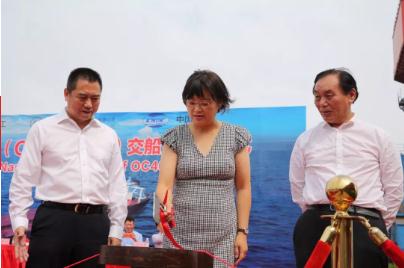 ▲ 香港明華船務(wù)有限公司商務(wù)部總經(jīng)理范愉女士為“明通”輪砍纜