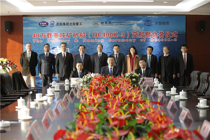 11月23日,武船集團北船重工為招商局能源運輸股份有限公司建造的第三艘新型40萬噸礦砂船“明業(yè)”輪命名交付并拔錨遠(yuǎn)航。這是武船集團40萬噸礦砂船系列產(chǎn)品中交付的第5艘船。香港明華船務(wù)有限公司總經(jīng)理丁磊,中船重工國際貿(mào)易有限公司船舶貿(mào)易部部長孫勇,武船集團黨委委員、北船重工董事長韓兵作為三方代表共同簽署了交接船議定書。