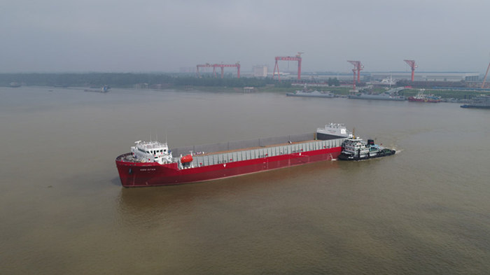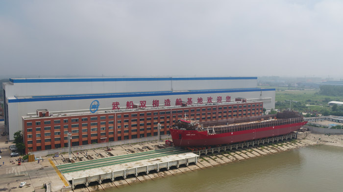 6月1日上午9時28分,由武船集團海工院設(shè)計、雙柳武船承建的13000DWT甲板運輸船2號船駛離雙柳武船基地2號系泊試驗碼頭,前往南通瑞泰基地進行最后的交付工作。當天下午3:00整,13000DWT姊妹船3號船沿著雙柳基地滑道,順利下水。