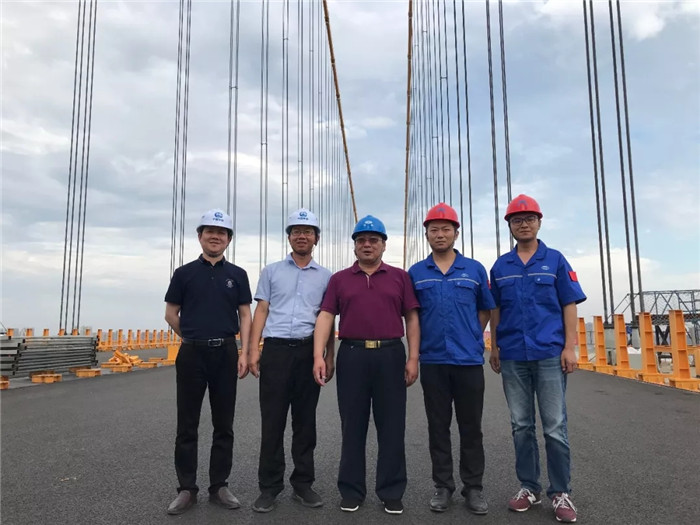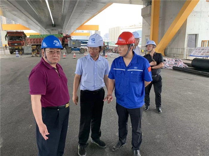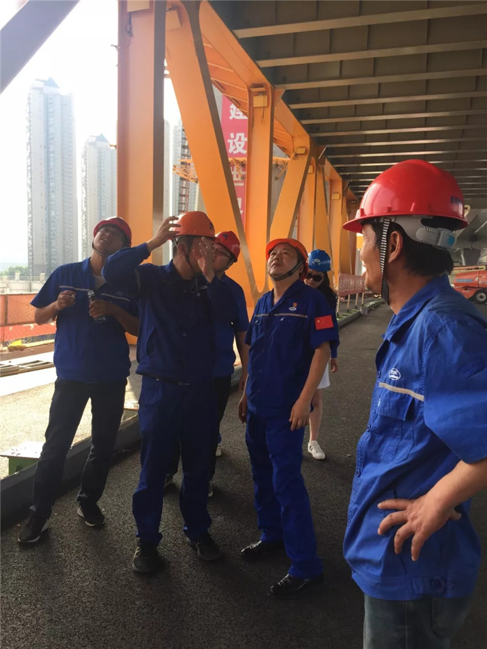 田軍首先親切慰問(wèn)了項(xiàng)目部成員,詳細(xì)了解了楊泗港大橋目前的進(jìn)展情況,察看了現(xiàn)場(chǎng)施工情況。田軍對(duì)楊泗港大橋現(xiàn)場(chǎng)安裝工作取得的成績(jī)表示祝賀,并對(duì)項(xiàng)目后期總體計(jì)劃的實(shí)施和部署提出了指導(dǎo)性意見(jiàn)。田軍要求,項(xiàng)目部要根據(jù)總包工期要求做好工程總體計(jì)劃安排和跟蹤,在施工過(guò)程中要嚴(yán)格遵守工藝要求、堅(jiān)決執(zhí)行質(zhì)量紀(jì)律,同時(shí)做好高空、臨邊作業(yè)及防暑降溫等措施,確保項(xiàng)目保質(zhì)保量、安全高效地推進(jìn)。