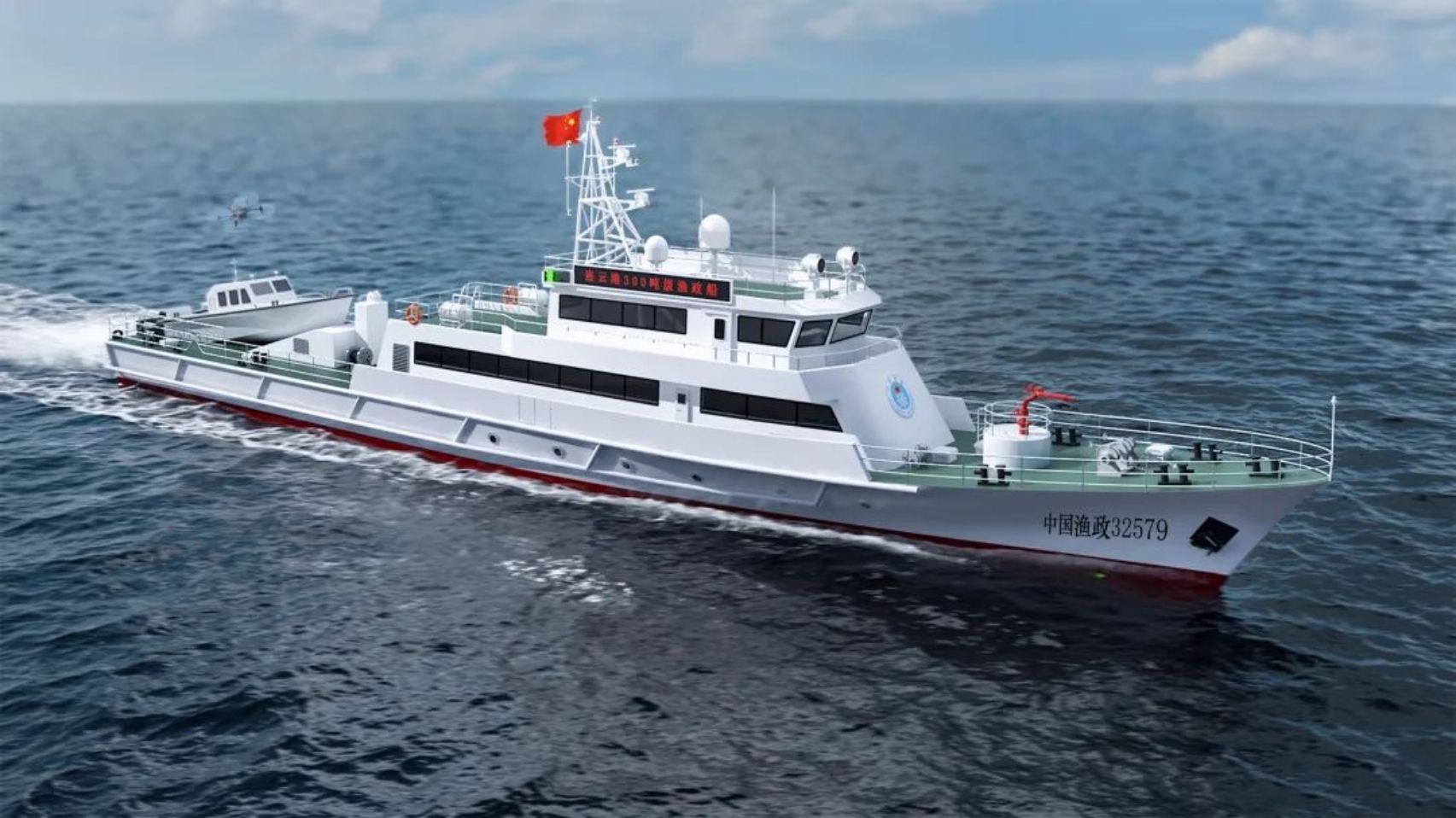全船總長(zhǎng)53米,型寬7.8米,型深4米,船型為深V型,傾斜船艏、方尾,采用通長(zhǎng)甲板、雙機(jī)、雙槳,直線推進(jìn)方式;主船體為鋼質(zhì),甲板室為鋁質(zhì)。建成后將代表國(guó)家行使?jié)O業(yè)行政執(zhí)法權(quán),有效履行連云港管轄海域漁政、漁業(yè)等相關(guān)漁業(yè)行政執(zhí)法管理;滿足執(zhí)行200海里專屬經(jīng)濟(jì)區(qū)巡航管理任務(wù)的需要;兼顧漁業(yè)海難輔助救助等任務(wù)。