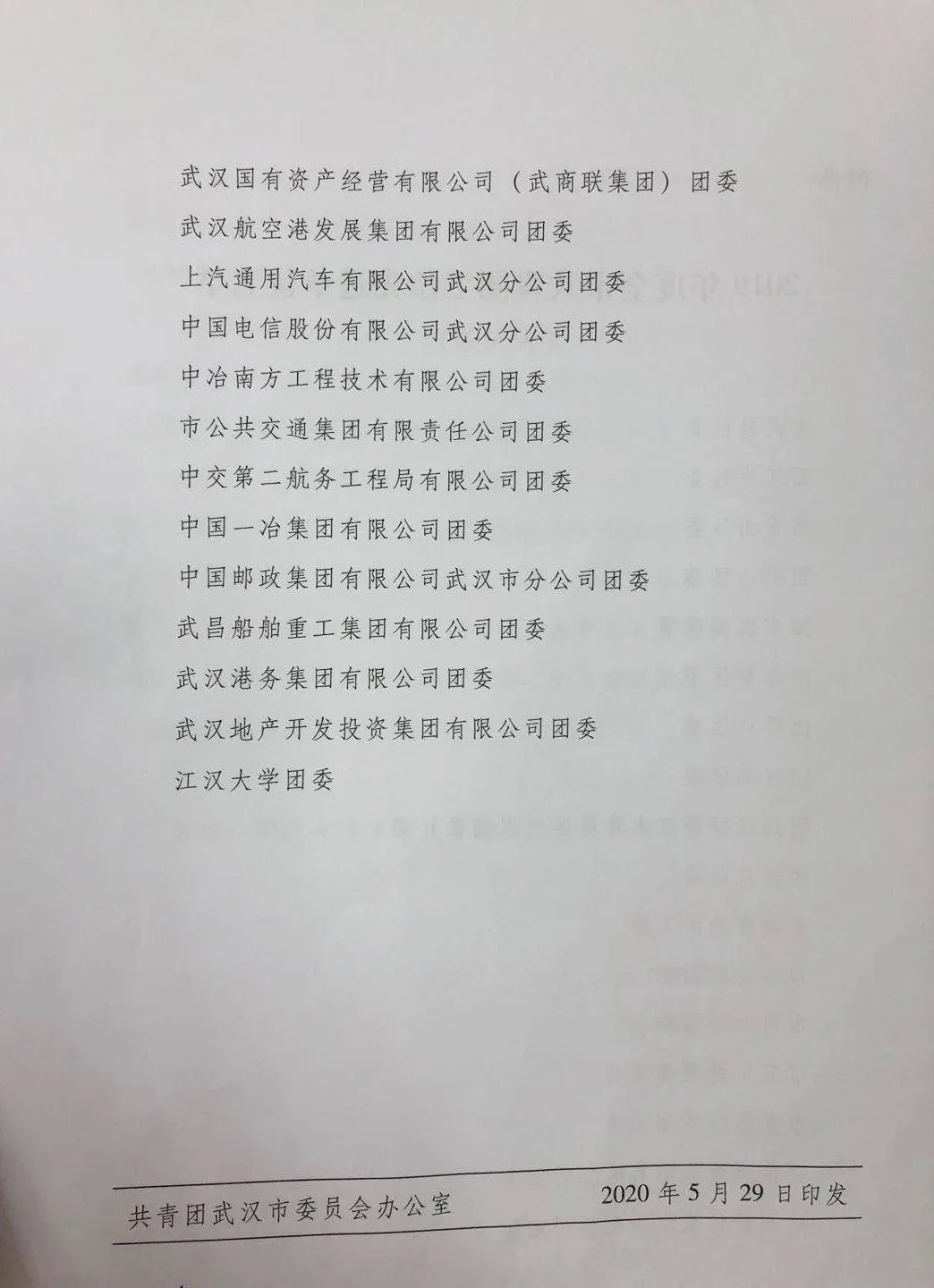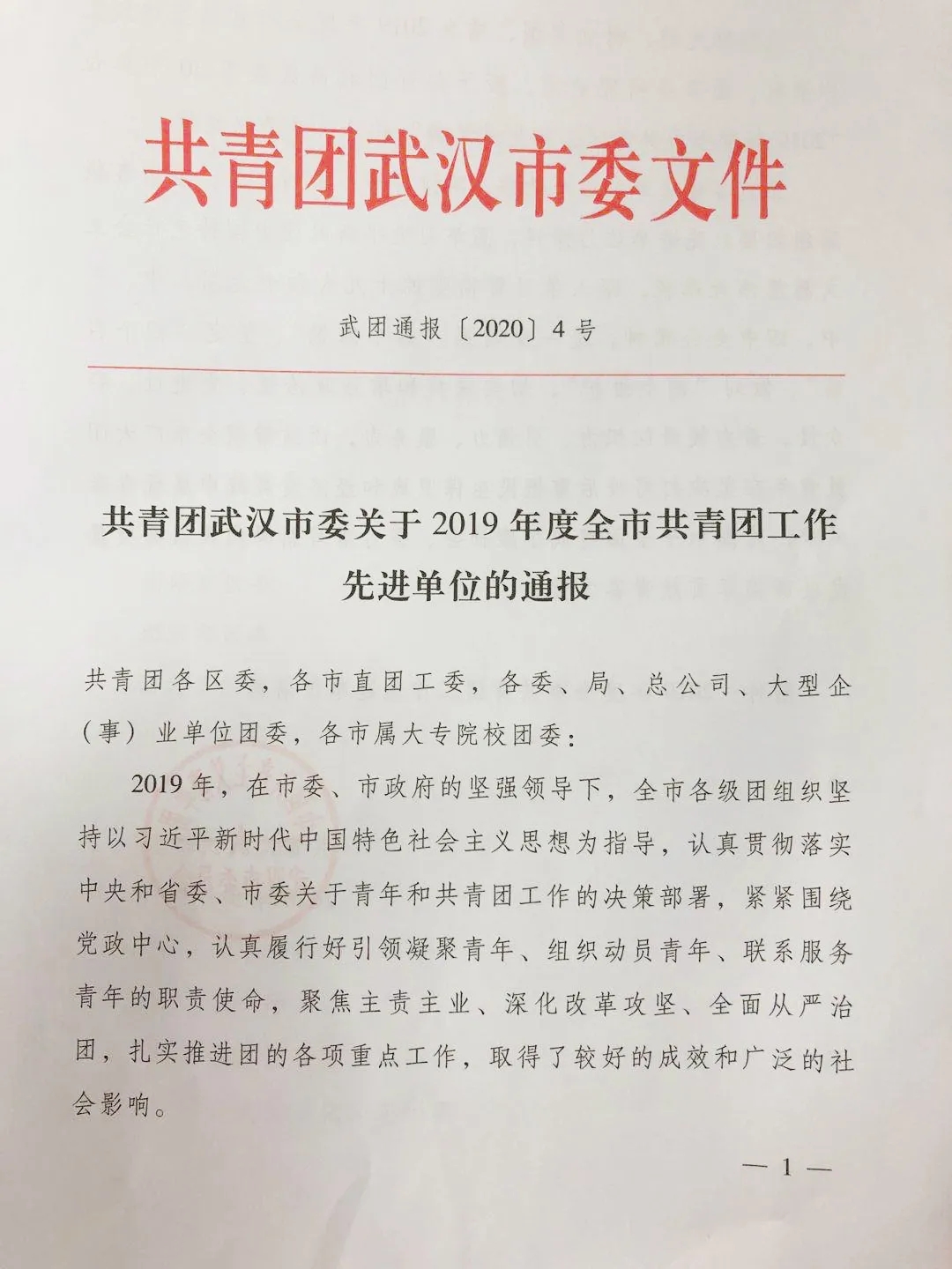 武船集團(tuán)團(tuán)委被授予2019年度武漢市共青團(tuán)工作先進(jìn)單位榮譽(yù)稱號。