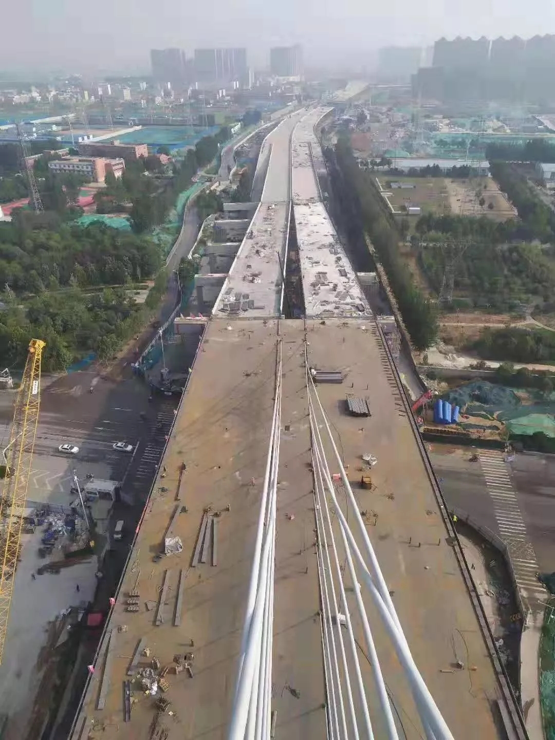 項目自開工以來,武船重工股份高度重視合同履約,領(lǐng)導(dǎo)班子成員多次赴項目現(xiàn)場了解并解決問題,確保項目高效推進(jìn)。項目部針對項目技術(shù)難度高、施工工藝復(fù)雜、高空作業(yè)和同步交叉作業(yè)安全風(fēng)險高、質(zhì)量控制標(biāo)準(zhǔn)嚴(yán)及工期緊的特點,積極應(yīng)對,精心組織施工。先后克服了冬季嚴(yán)寒施工、夏季高溫給生產(chǎn)節(jié)點帶來的不利影響,并根據(jù)實際情況,科學(xué)組織人員24小時進(jìn)行作業(yè),開展了多項勞動競賽活動。通過自主設(shè)計創(chuàng)新性專用機(jī)械設(shè)備加快生產(chǎn)進(jìn)度,主動聯(lián)絡(luò)業(yè)主單位合理、緊湊、有序地安排交叉施工,為項目順利推進(jìn)提供了有力保障。武船重工股份先后多次得到河南省、鄭州市及業(yè)主監(jiān)理單位的好評。目前項目正進(jìn)行橋面施工,預(yù)計可在下月中旬實現(xiàn)全橋通車。