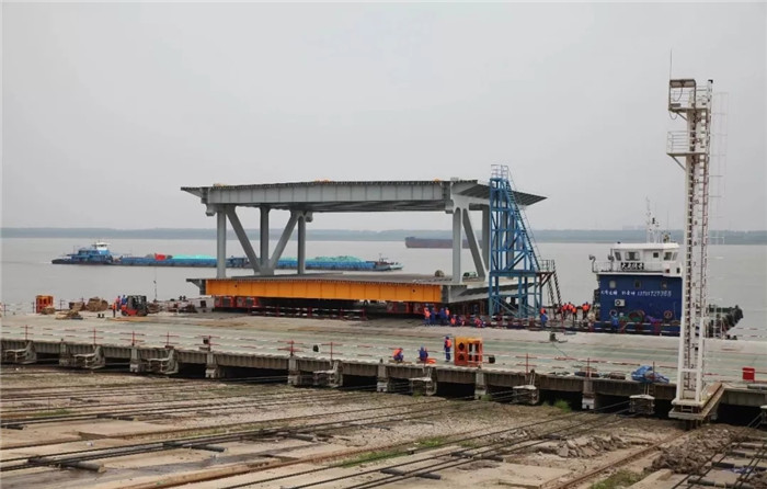 近日,由武船重工股份承建的楊泗港長(zhǎng)江大橋主橋鋼桁梁首節(jié)G24H分段成功裝船,將發(fā)運(yùn)至橋址進(jìn)行吊裝。