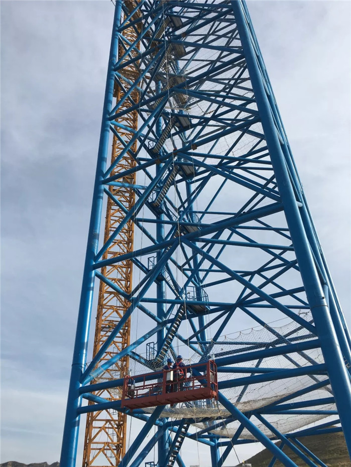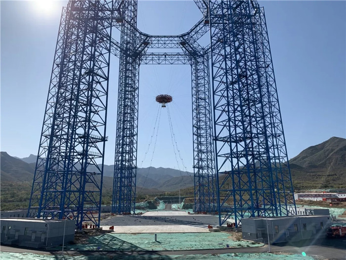 2019年6月,試驗場6個鋼結(jié)構(gòu)塔架拔地而起,與之相匹配的共18套絞車設(shè)備、36根鋼絲和700余組(高空500余組、近地200余組)導(dǎo)向輪,以及相關(guān)配套電纜、電氣設(shè)備設(shè)施的安裝工作接近尾聲,待“隨動盤”運到,便可以開始進行總裝和調(diào)試工作。