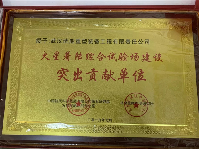 ▲武船集團重裝公司榮獲“火星著陸綜合試驗場建設(shè)突出貢獻單位”