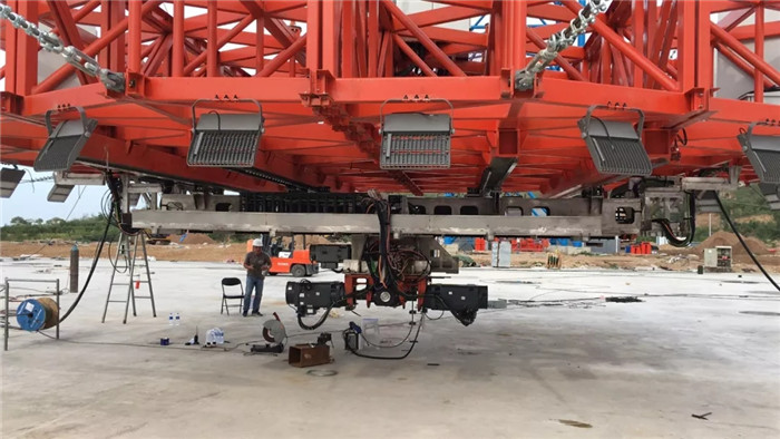 2019年7月初,“隨動盤”在武船集團重裝公司廟山基地順利完成組裝及檢測實驗,并立即拆分裝箱發(fā)往懷來?!半S動盤”上安裝的導(dǎo)軌平面度公差達到0.1mm、平行度公差達到0.15mm ,各項檢測數(shù)據(jù)滿足工藝精度及試驗要求。