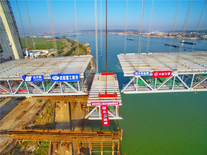 11月15日上午,隨著白洋長(zhǎng)江大橋最后一片鋼桁梁吊裝到位,由武船重工股份承建的白洋長(zhǎng)江大橋主橋?qū)崿F(xiàn)合龍。