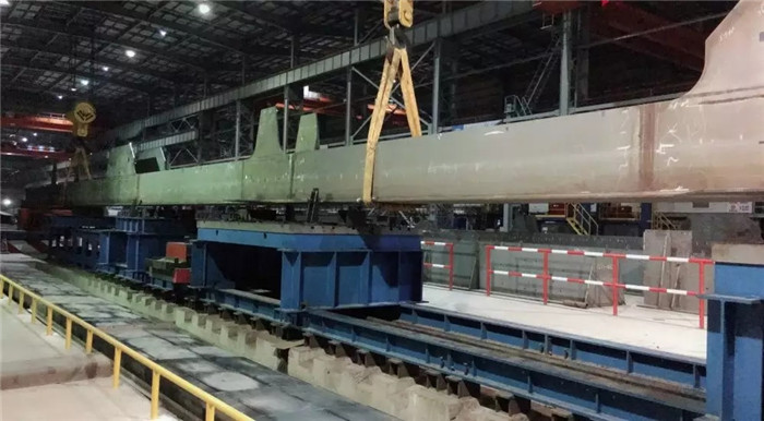 ▲細(xì)長(zhǎng)桿件在武船重工股份廠內(nèi)加工制造
