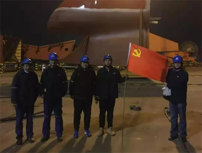 11月26日,中國船舶武船集團(tuán)船舶總裝部支持作業(yè)區(qū)黨支部在生產(chǎn)現(xiàn)場開展特色支部主題黨日活動,突擊完成5000t臺灣海峽大型巡航救助船球鼻艏分段吊裝工作,標(biāo)志著該產(chǎn)品主船體形成。