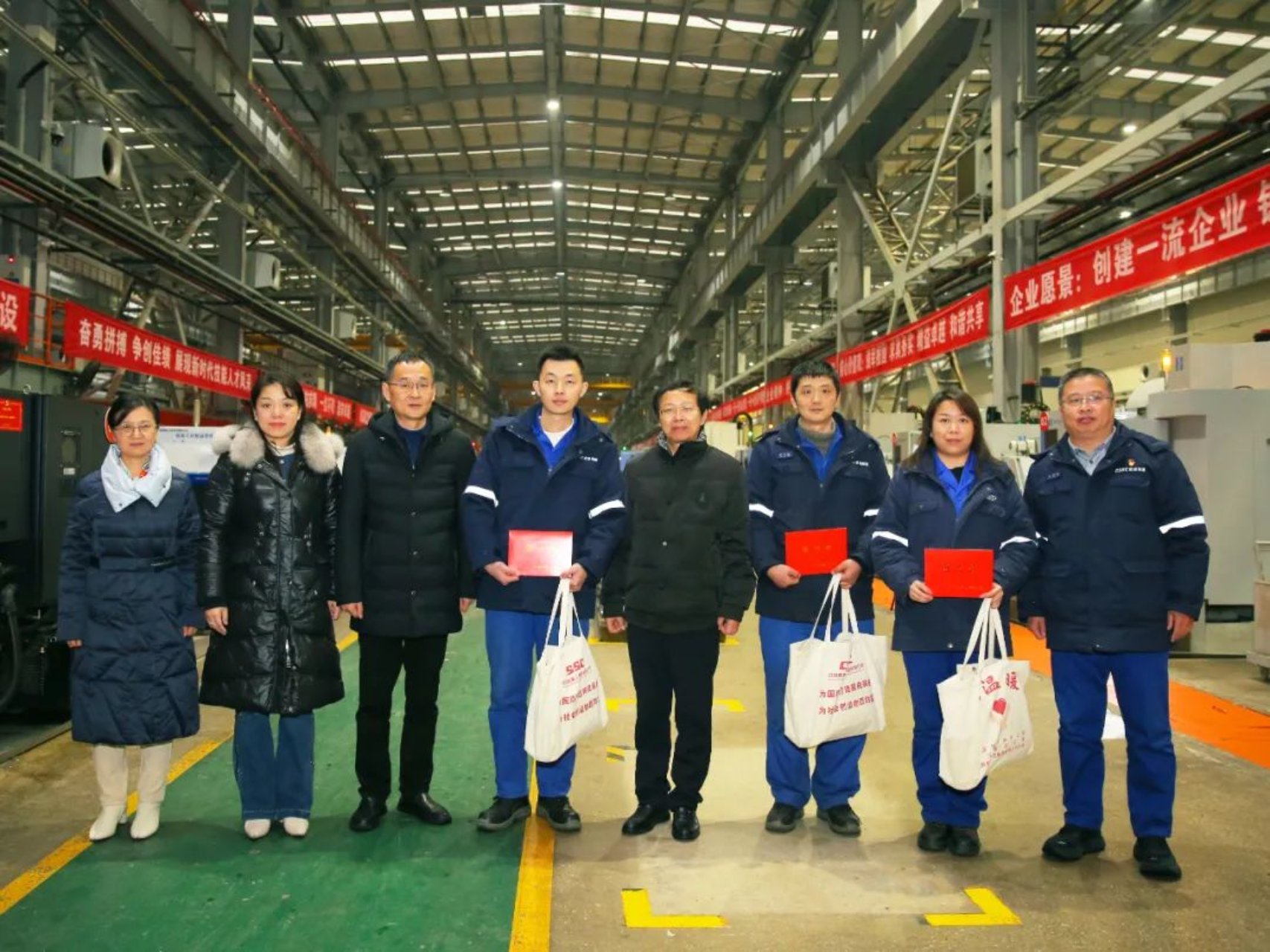秦少相主席一行在船臺總裝區(qū)、數(shù)控加工區(qū)等生產(chǎn)區(qū)域,親切慰問了公司一線職工代表,送上慰問金和慰問品,詢問了大家的工作及生活狀況,對大家立足崗位、拼搏奮斗,為國防建設(shè)作出的重要貢獻表示感謝,期望大家牢記初心使命,奮勇爭先,為全面推進中華民族偉大復(fù)興作出新的更大貢獻。