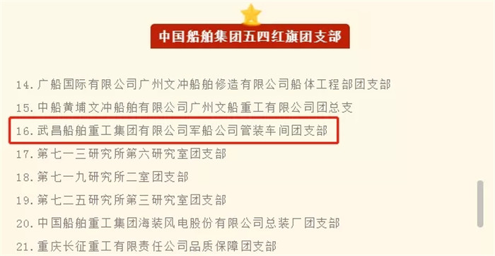 “中國(guó)船舶集團(tuán)五四紅旗團(tuán)支部”榮譽(yù)稱號(hào)