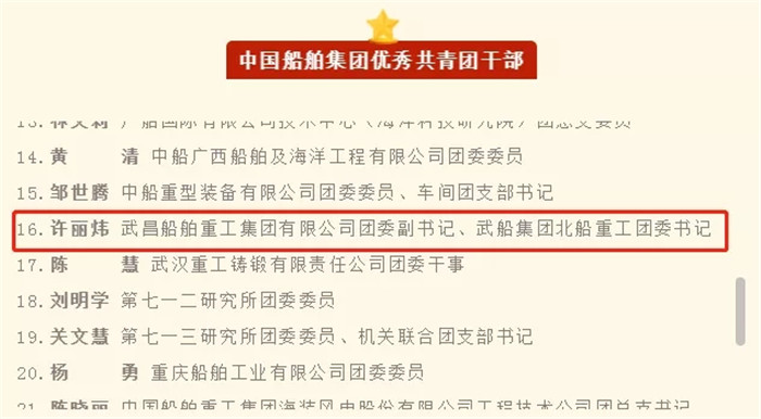 “中國(guó)船舶集團(tuán)優(yōu)秀共青團(tuán)干部”榮譽(yù)稱號(hào)