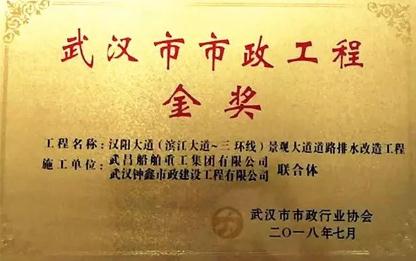 2018年8月,武漢市市政工程金獎(jiǎng)評選工作如期開展,武船集團(tuán)交通研究院參與建設(shè)的漢陽大道(濱江大道~三環(huán)線)景觀大道工程被評為武漢市市政工程金獎(jiǎng)。