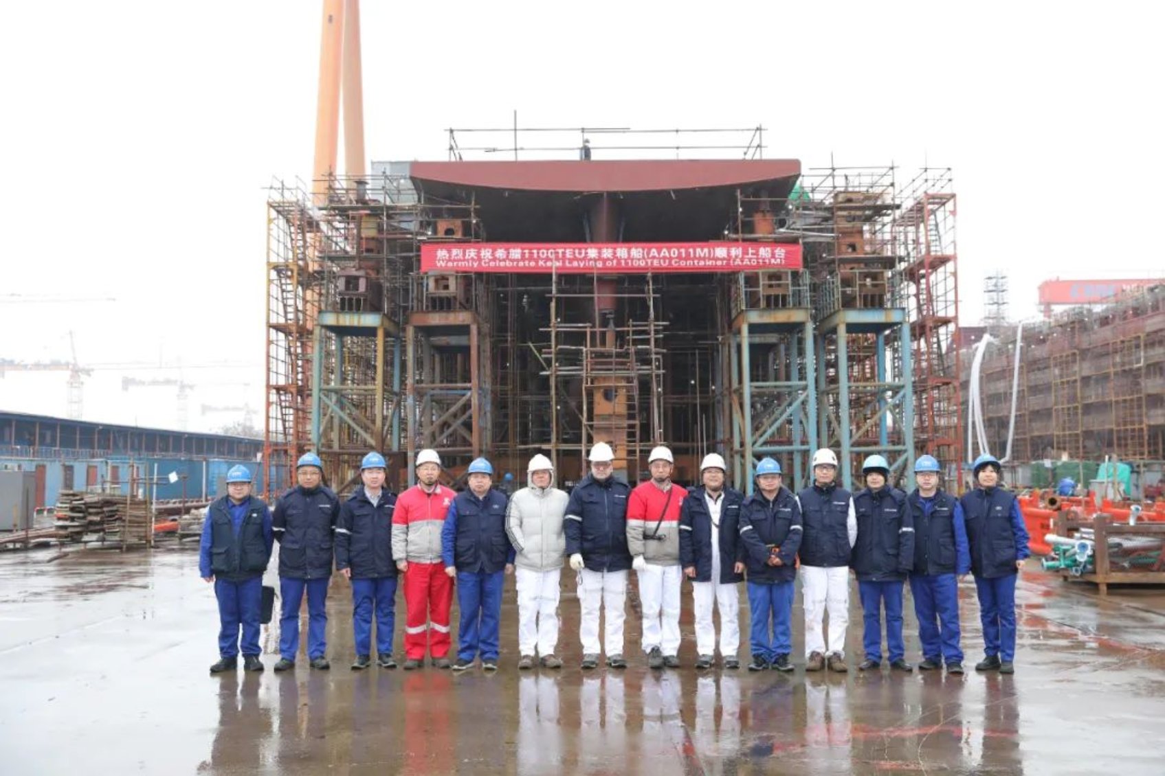 12月18日,由中國(guó)船舶集團(tuán)武昌造船承建的希臘1100TEU集裝箱船1號(hào)船 順利完成上船臺(tái)節(jié)點(diǎn)!