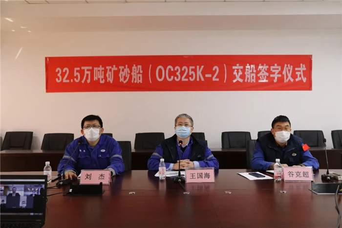 4月15日,中國船舶武船集團(tuán)北船重工為工銀金融租賃有限公司和招商局能源運(yùn)輸股份有限公司建造的32.5萬噸礦砂船“ORE FUZHOU”輪順利交付,這是繼北船重工2月份剛剛交付首制32.5萬噸礦砂船“ORE YANTAI”輪之后,交付的同型姊妹船。該船在延續(xù)首制船電簽的基礎(chǔ)上,通過視頻會(huì)議形式舉辦交船簽字儀式,武船集團(tuán)北船重工董事長(zhǎng)王國海、工銀租賃航運(yùn)金融事業(yè)部執(zhí)行總經(jīng)理郭芳萌、招商輪船副總經(jīng)理丁磊先后講話并就后續(xù)產(chǎn)品建造情況進(jìn)行了座談交流。