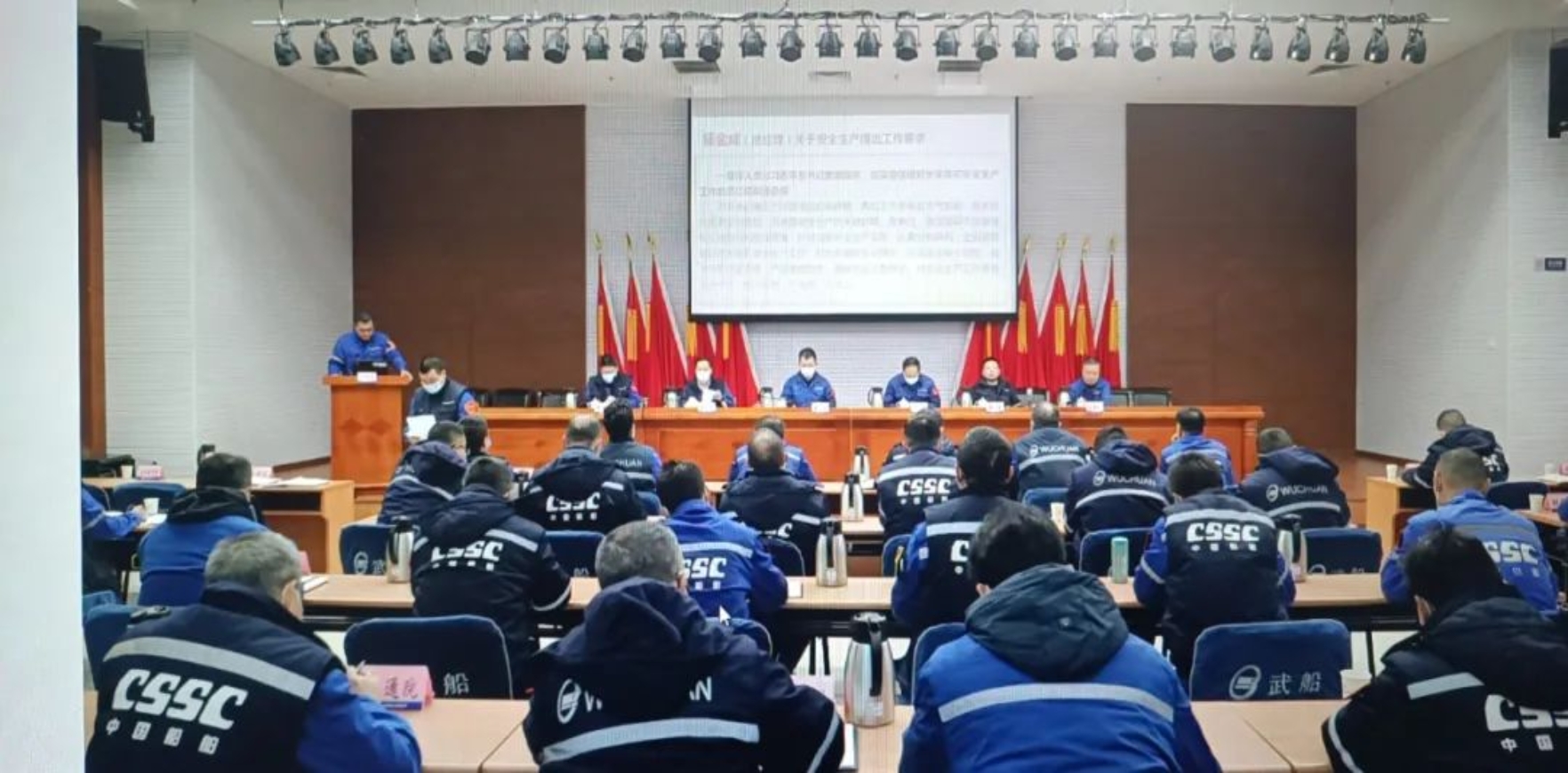 2022年12月5日,中國船舶武船在雙柳總部召開2022年度職業(yè)健康安全管理體系管理評審會暨12月份安委會擴(kuò)大會。會議由公司黨委副書記、總經(jīng)理梁師清主持,黨委書記、董事長姜濤,公司領(lǐng)導(dǎo)田軍、唐瀅、陳仲明、左照海及各單位主要負(fù)責(zé)人參會。