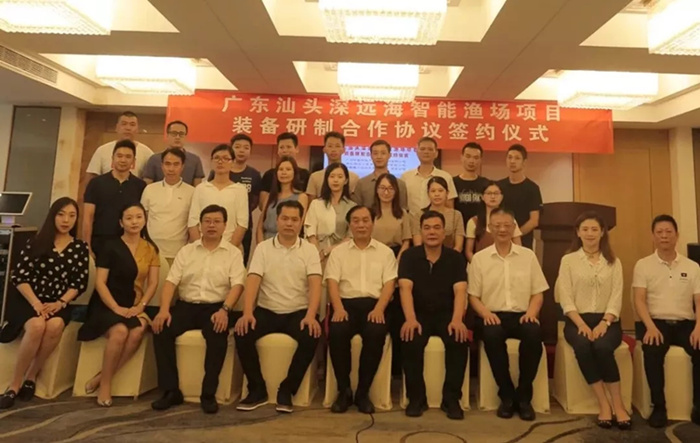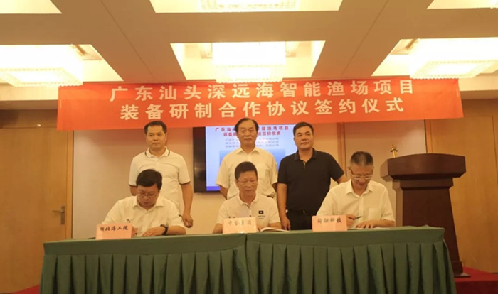 2018年8月22日,武船集團(tuán)湖北海洋工程裝備研究院有限公司及中船重工海融裝備(海南)有限公司與廣州中譽(yù)科技產(chǎn)業(yè)控股集團(tuán)有限公司在廣東省汕頭市舉行簽約儀式。在武船集團(tuán)黨委書記、董事長楊志鋼,汕頭市海洋與漁業(yè)局局長周昭勇的共同見證下,與中譽(yù)集團(tuán)簽訂了《廣東汕頭深遠(yuǎn)海智能漁場項(xiàng)目裝備研制合作協(xié)議》。