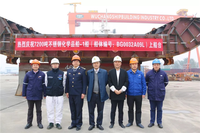 近日,由武船集團(tuán)船舶公司承建的7200噸不銹鋼化學(xué)品船1號(hào)船順利上船臺(tái),進(jìn)入船臺(tái)建造階段。