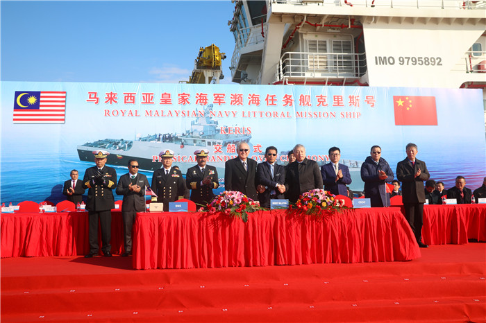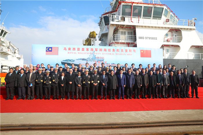 12月31日,中國(guó)船舶集團(tuán)有限公司所屬武昌船舶重工集團(tuán)有限公司為馬來西亞海軍建造的瀕海任務(wù)艦首艦在中國(guó)船舶武船集團(tuán)江蘇啟東基地交付。