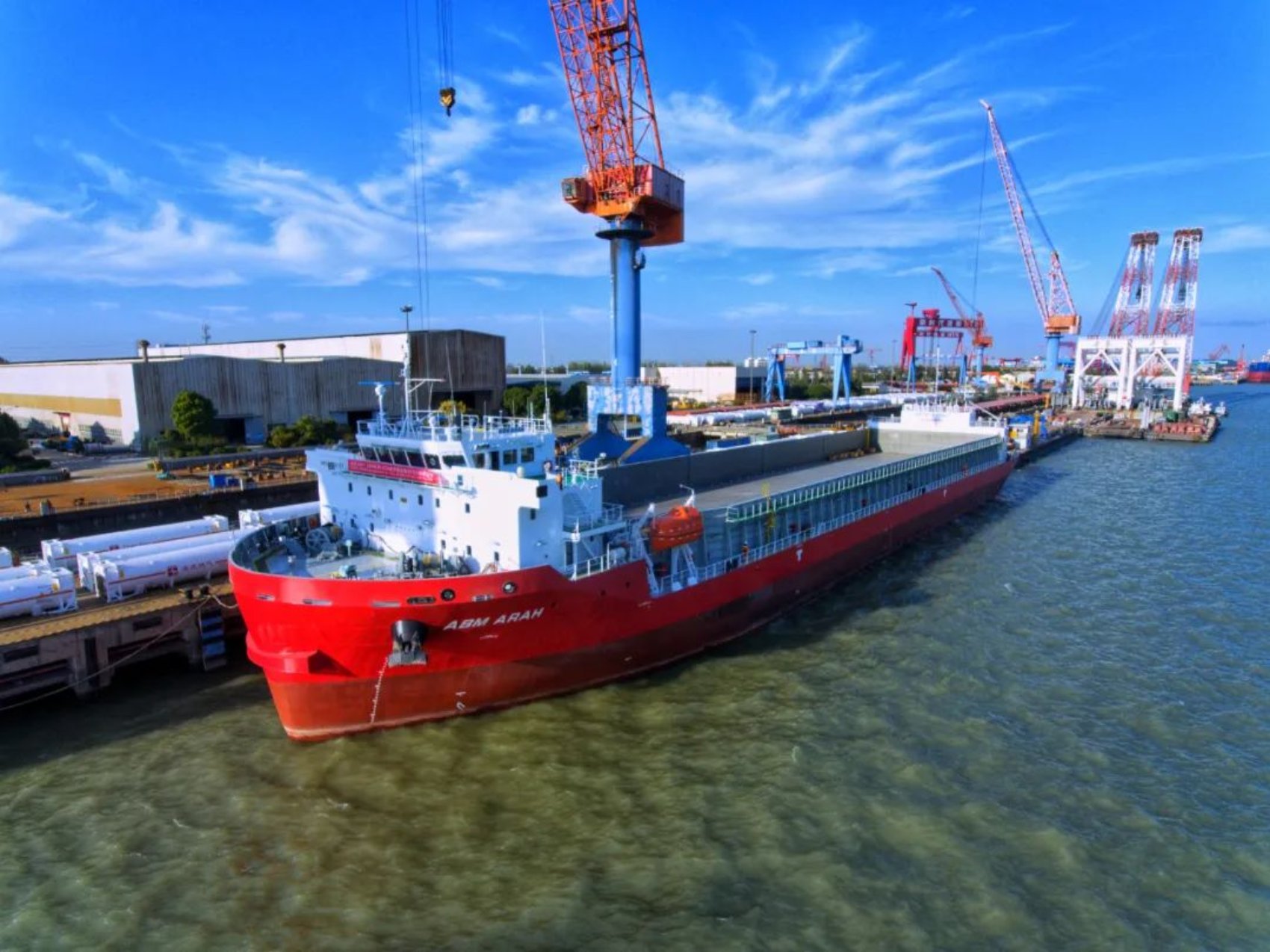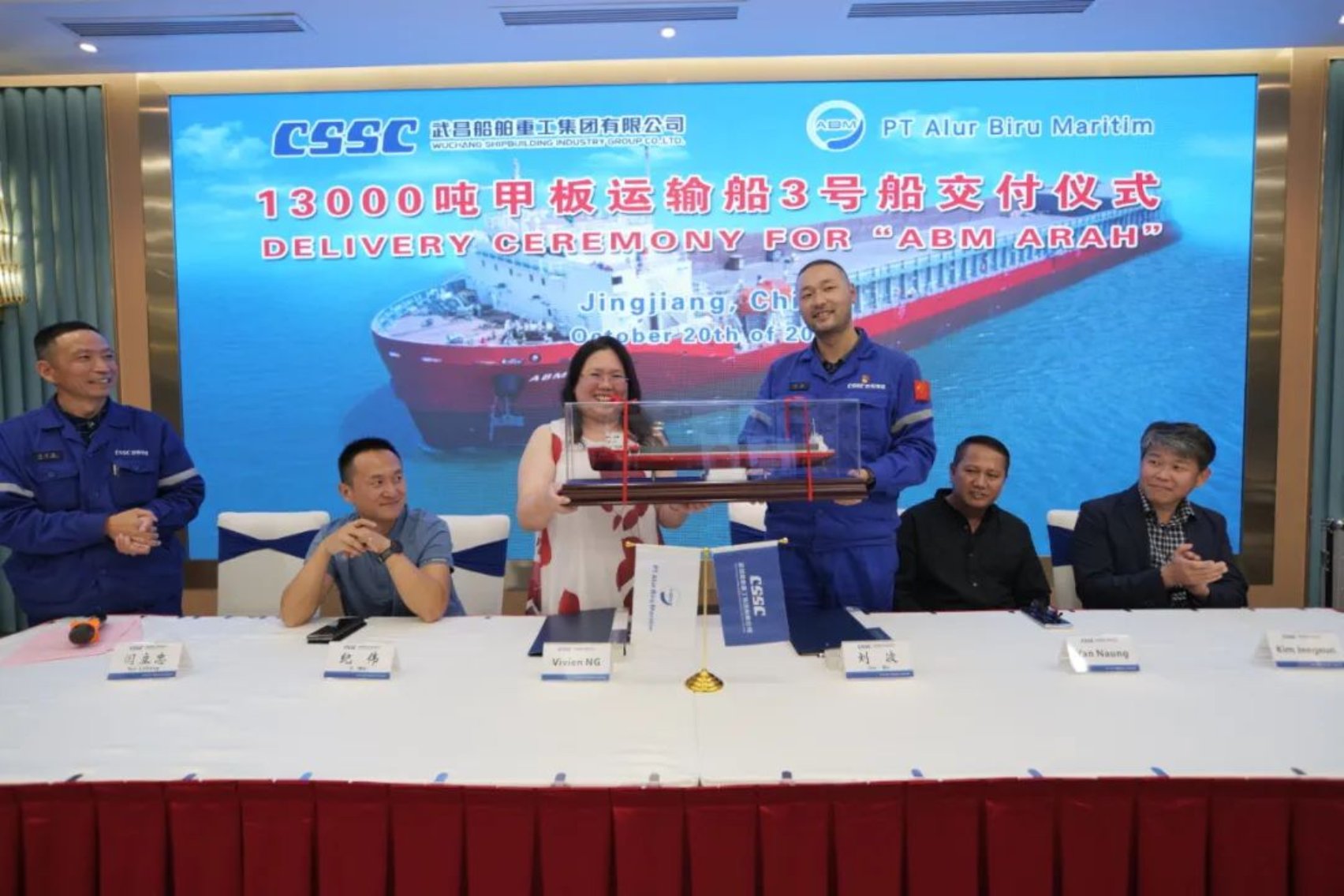 2022年10月20日由中國(guó)船舶武船為印尼PT ABM公司建造的13300噸甲板運(yùn)輸船3號(hào)船在中船澄西(泰州)出口碼頭順利交付。13300噸甲板運(yùn)輸船3號(hào)船作為武船為該船東設(shè)計(jì)、建造的第11條船,也是第三代系列船的收官之作。