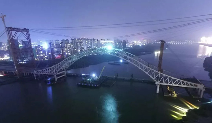 大橋主拱合龍后,橋面主梁運(yùn)輸與架設(shè)施工將全面鋪開,預(yù)計(jì)今年8月30日實(shí)現(xiàn)橋面合龍。