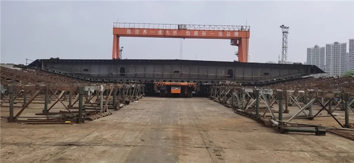 棋盤洲長江大橋最后一輪鋼箱梁節(jié)段下胎架