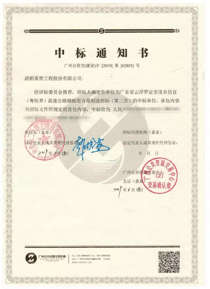 近日,武船重工股份中標(biāo)廣東省云浮羅定至茂名信宜(粵桂界)高速公路鋼板組合梁制造項(xiàng)目。