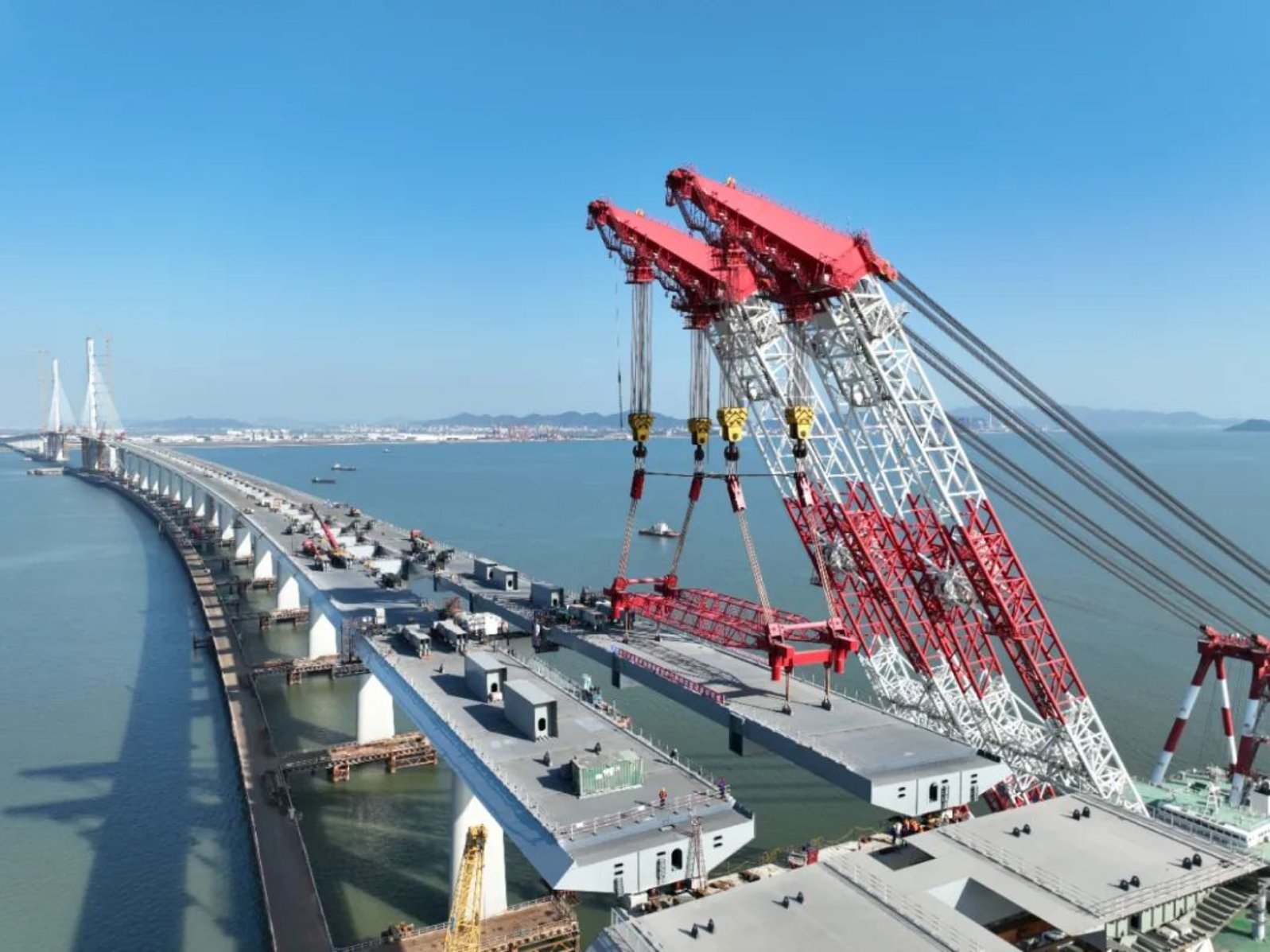 在近5個(gè)月的發(fā)運(yùn)過(guò)程中,中山基地及橋位施工現(xiàn)場(chǎng)克服臺(tái)風(fēng)“蘇拉”“小犬”“杜蘇芮”影響,與共建單位及海事部門(mén)充分溝通、緊密協(xié)作,搶抓作業(yè)窗口,圓滿完成全橋32個(gè)大節(jié)段發(fā)運(yùn)和現(xiàn)場(chǎng)配合吊裝工作,有力保證中引橋連續(xù)吊裝施工。