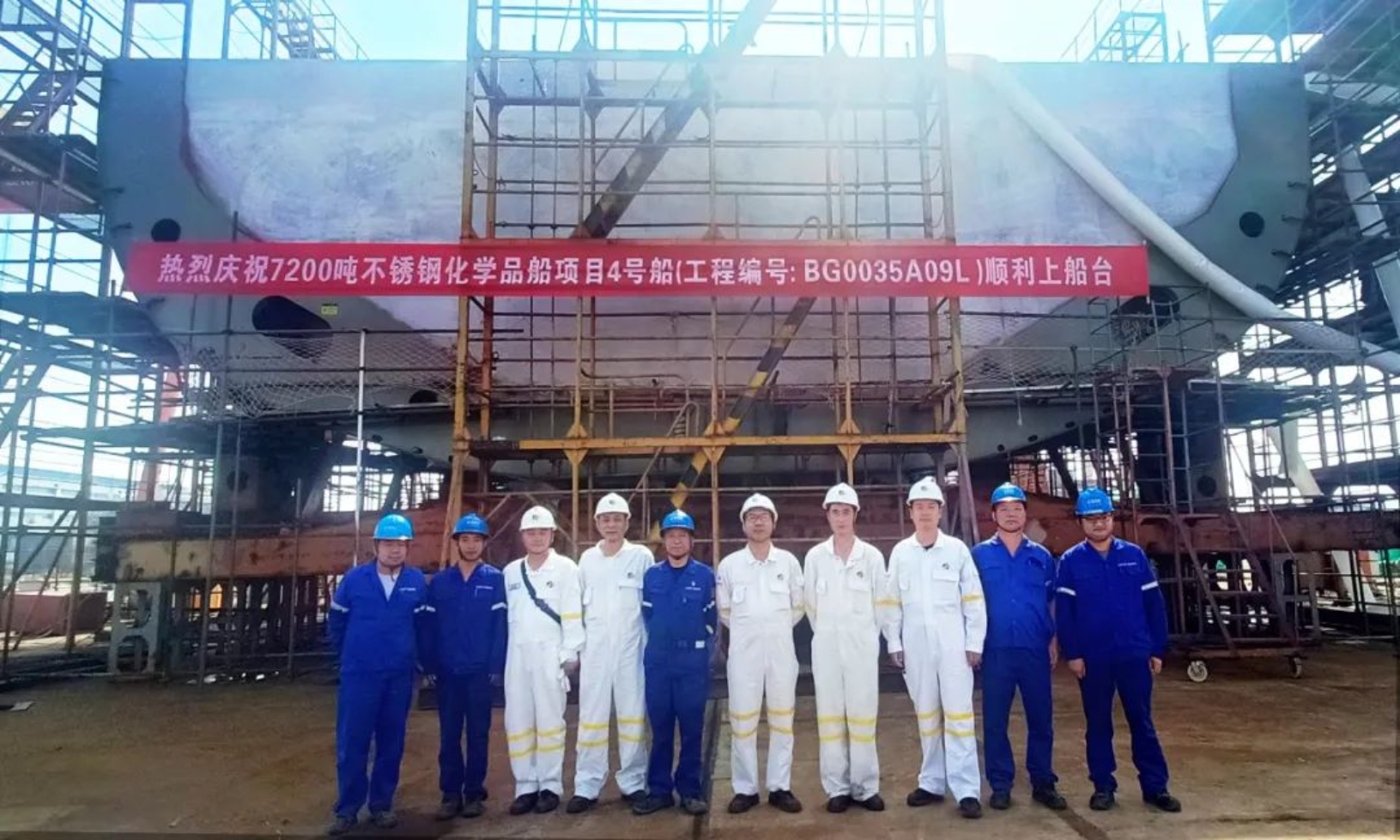 5月25日,由武昌造船建造的7200DWT化學(xué)品船4號(hào)船順利完成上船臺(tái)節(jié)點(diǎn),標(biāo)志著該船正式進(jìn)入船臺(tái)總組合攏階段。