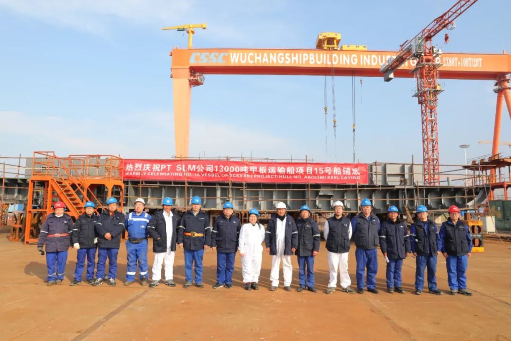 12月22日下午2點38分,由武昌造船承建的第15艘13000DWT甲板運輸船順利實現(xiàn)上船臺節(jié)點,比計劃時間提前5天,同時標(biāo)志該船正式進入船臺搭載階段。船東、船檢以及相關(guān)單位負(fù)責(zé)人參加上船臺儀式。