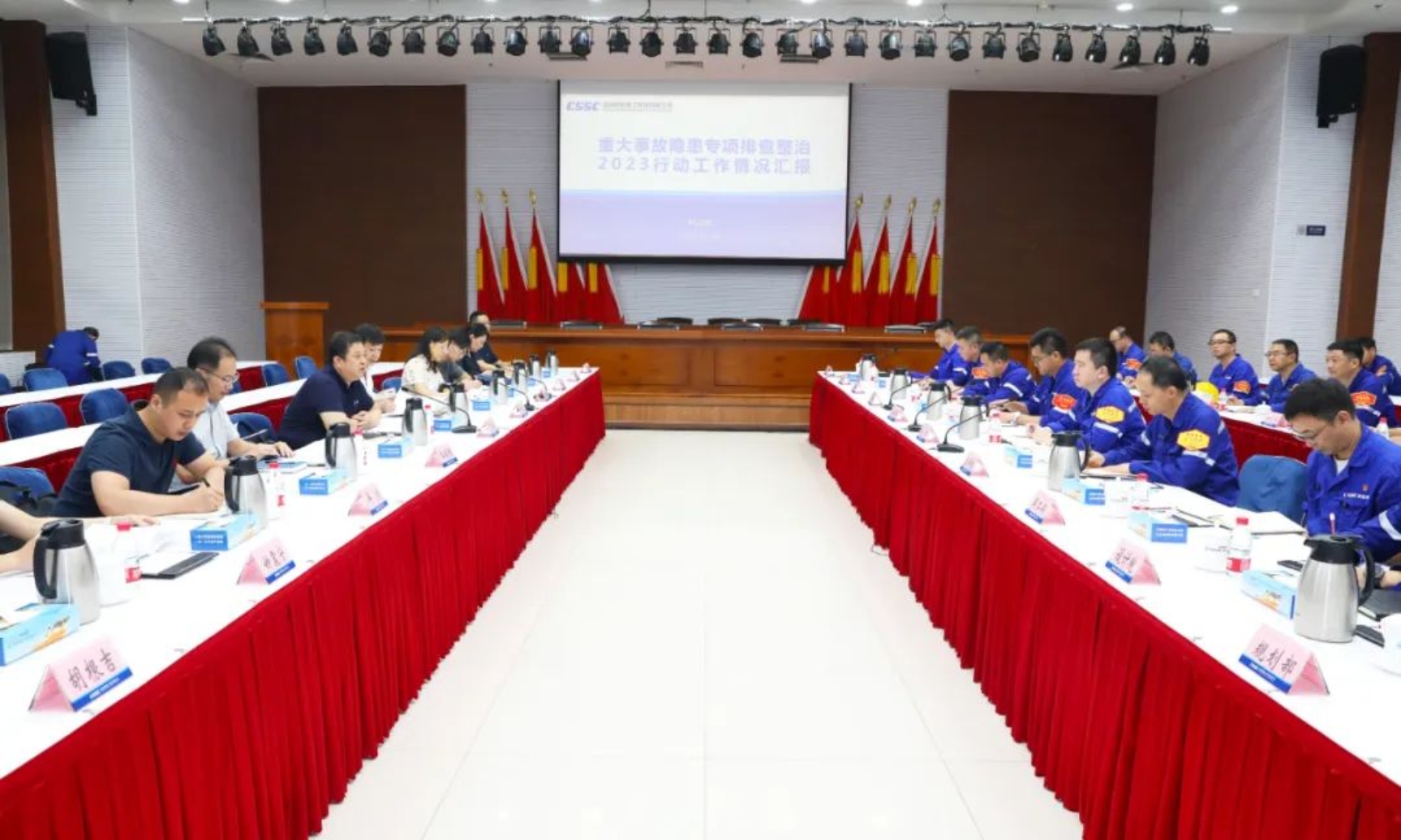 7月13日,國防科工局副司長丁向明一行到中國船舶集團武昌造船調研檢查安全生產工作,中國船舶集團公司質量安環(huán)部有關領導參加調研檢查工作。公司黨委書記、董事長姜濤,黨委副書記、總經理梁師清及相關部門負責人參加調研檢查。