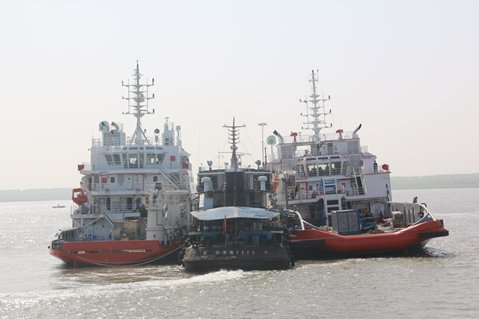 4月8日上午9點(diǎn)28分,由武船集團(tuán)雙柳武船承制的三型七艘船中45米WUV-4號(hào)船和58米AHTS-2號(hào)船同時(shí)駛離雙柳基地1號(hào)系泊試驗(yàn)碼頭前往南通順泰基地。