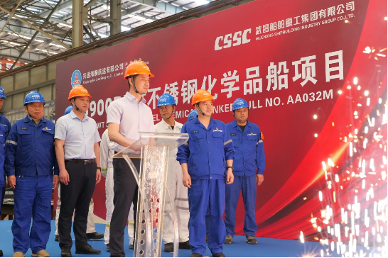 開工儀式上,田軍代表公司對蒞臨活動現(xiàn)場的來賓表示熱烈歡迎并致辭。他表示,興通海運(yùn)是中國化學(xué)品運(yùn)輸行業(yè)領(lǐng)先的船東,主要從事國際、國內(nèi)沿海散裝液體危險貨物的水上運(yùn)輸業(yè)務(wù)。本項目是雙方第一次合作,武昌造船高度重視。今天的開工標(biāo)志著項目建設(shè)全面鋪開,武昌造船將充分總結(jié)已交付化學(xué)品船的設(shè)計、建造和管理經(jīng)驗,與船東、設(shè)計院、船級社等參建各方共同努力,精心組織生產(chǎn),確保項目高質(zhì)量按期推進(jìn)。