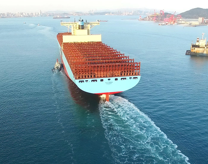 6月14日下午14時30分,伴隨著陣陣鞭炮聲,“埃斯特爾馬士基”緩緩駛離武船集團北船重工修船分廠碼頭,按期交付給船東,以嶄新的姿態(tài)開始新的征程。該船是馬士基Emma系列改裝項目的第8艘,也是該系列最后一艘,它的交付標志著北船重工在Emma項目上畫上了一個圓滿的句號。