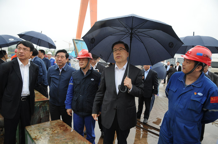 5月11日下午,山東省委常委、青島市委書記張江汀,市委常委、副市長(zhǎng)王魯明,市委常委、西海岸新區(qū)黨工委書記、區(qū)委書記王建祥等領(lǐng)導(dǎo)一行到武船集團(tuán)北船重工調(diào)研企業(yè)科技創(chuàng)新、發(fā)展海洋經(jīng)濟(jì)等工作。