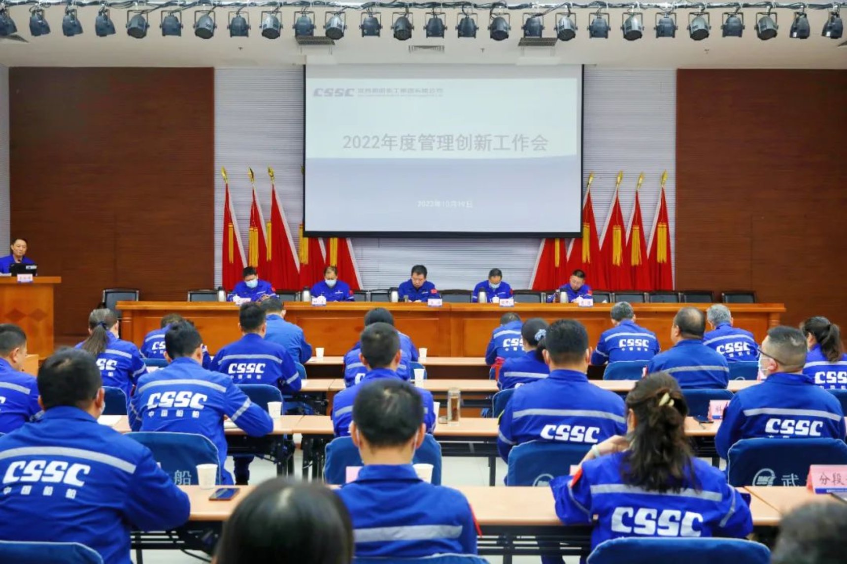 為充分落實(shí)公司管理創(chuàng)新相關(guān)工作,提升公司管理創(chuàng)新水平,創(chuàng)新驅(qū)動、高效發(fā)展,貫徹落實(shí)黨的二十大精神,10月19日上午,中國船舶武船召開2022年度管理創(chuàng)新工作會。公司黨委書記、董事長姜濤,黨委副書記、總經(jīng)理梁師清,黨委委員、副總經(jīng)理田軍,黨委委員、副總經(jīng)理、總工程師唐瀅,黨委委員、總會計師陳仲明出席會議,各單位負(fù)責(zé)人及創(chuàng)新能手代表等參加會議。
