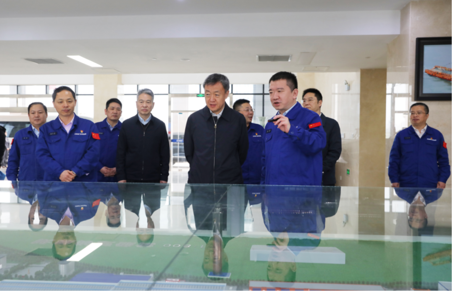 在七一二所,溫剛參觀了該所展廳和某重點(diǎn)試驗(yàn)室,觀看了綠色智能船舶遠(yuǎn)程運(yùn)維展示,查看了園區(qū)建設(shè)情況,聽取了關(guān)于裝備建設(shè)、產(chǎn)業(yè)規(guī)劃布局、科技創(chuàng)新成果等方面的情況匯報(bào);在武昌造船,溫剛調(diào)研了生產(chǎn)現(xiàn)場(chǎng),參觀了該公司展廳,聽取了武昌造船規(guī)劃布局、人才隊(duì)伍、產(chǎn)業(yè)結(jié)構(gòu)、科技創(chuàng)新、黨建工作及未來(lái)發(fā)展思路的匯報(bào)。