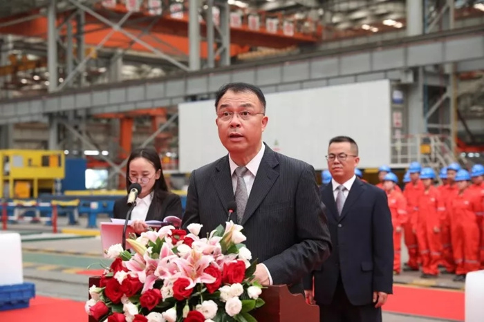 武船集團副總經(jīng)理姚勝華主持開工儀式。中國船級社,馬來西亞莫實德船廠,中船重工質(zhì)量安全環(huán)保部、國際部,中國船貿(mào)、七?一所、武船集團總會計師李應(yīng)昌等相關(guān)單位、有關(guān)部門領(lǐng)導(dǎo)和相關(guān)人員參加活動。